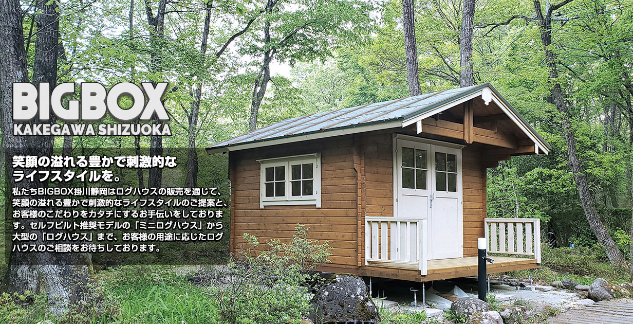 BIGBOX掛川静岡では、仮設工事から基礎工事まで対応のミニログシリーズを中心に販売、施工させて頂いております。趣味の部屋、子ども部屋、お洒落な店舗や事務所など、お客様の用途に応じて商品選定のアドバイスや、実際にログハウスをお使いのお客様との対談や内覧の調整などを通じて、失敗の無いログハウス選びをご提案いたします。また、立地の雰囲気に合わせたウッドデッキ&ウッドフェンス等の外構工事やガーデニングなどのご相談もお任せ下さい。